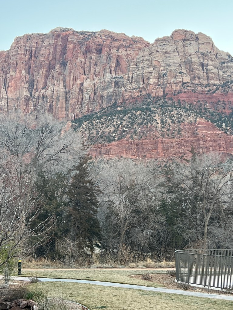 In silence, we made our way to home base which was a Marriott SpringHill Suite just outside the South entrance in Springdale, UT. Before checking in we had time for the Visitor Center to get a map of the park and take a short drive enjoying the sunset of this natural wonder. As our vehicle crept through the uncluttered, unpopulated and seemingly easy drive it was all we could do to not just audibly awe, gosh, wow and whoa at almost every turn. It wasn’t until we came to the infamous Zion-Mount Carmel Tunnel we discovered we were not on the scenic drive. This became a popular one-liner on our trip as we made this discovery several times at almost every other park saying “We’re not even on the Scenic Drive yet!” and laughing incredulously. We returned to the hotel via the local coffee shop to gather our breath and a caffeine jolt as were still on midwest time. The outdoor hot tub offered an exceptional view of the surrounding park and the water was warm and the jets were quite disappointing from the night before #sidenote.
