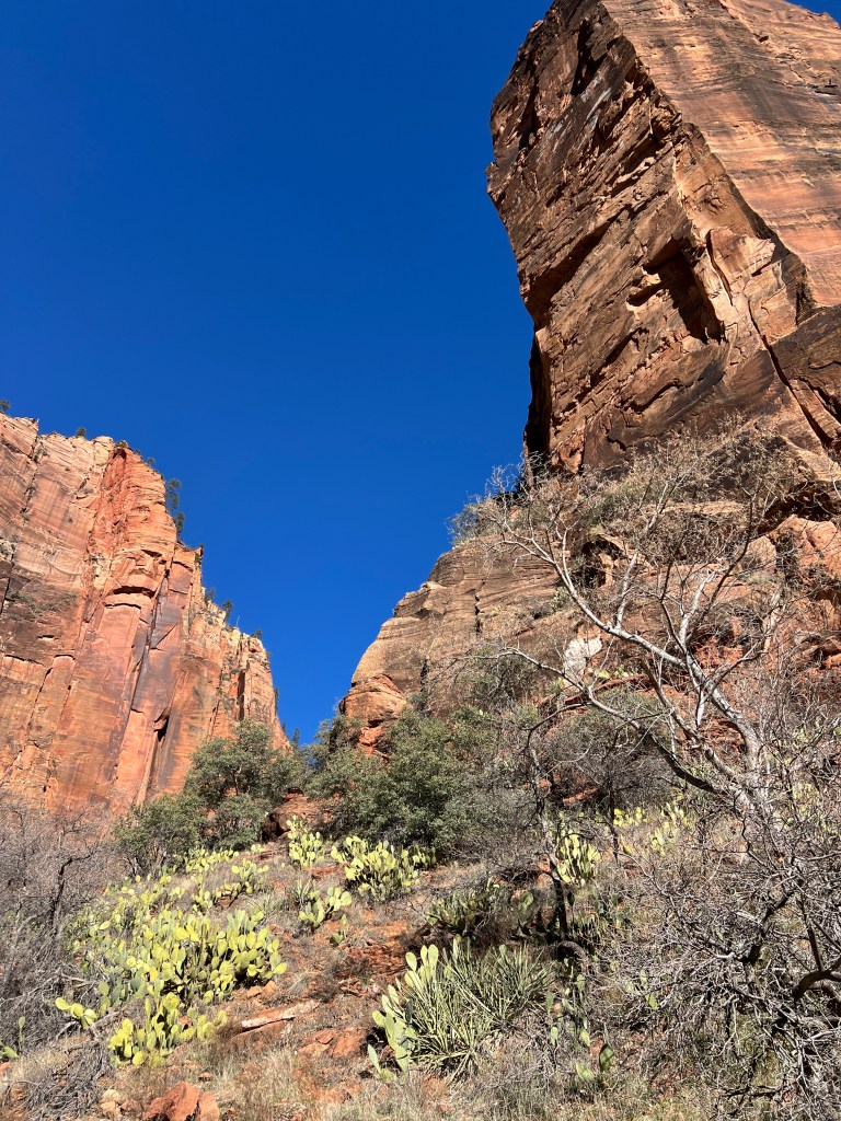 We continued our journey Wednesday and drove past the main entrance to make a side trip to Kolob Canyons just North of our destination. To say the five mile drive and it’s unveiling sights were indescribable is not only a metaphor, it’s also the truth. The view included viewing a 2000 foot cliff wall and the sun bouncing reflecting such significant hues from an extraordinary pallet that only nature could create is unworthy and almost disrespectful to the grandeur of the eyes witness.