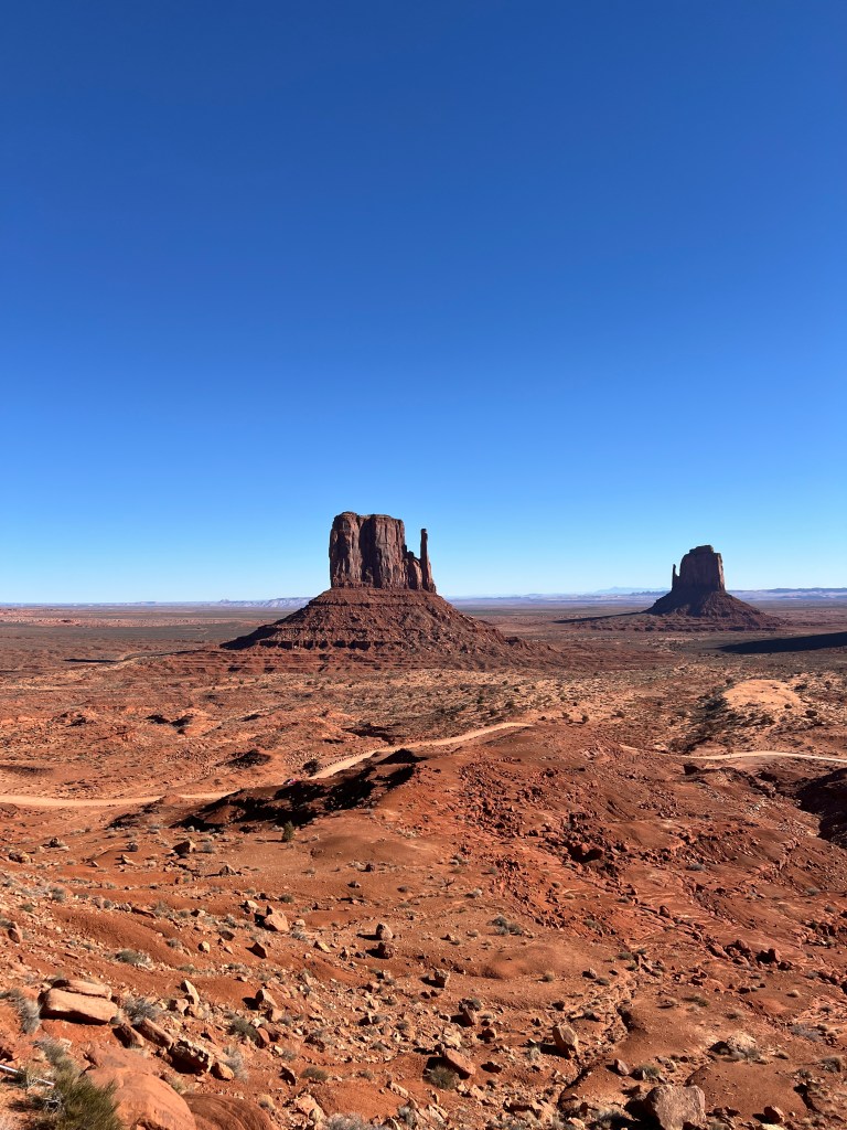 Then we drove to Canyonlands in the later afternoon to discover it’s sedimentary colors and layers from high above the rock line. We enjoyed the scenic drive and circled back to begin our trek further South and to overnight at Monument Valley.